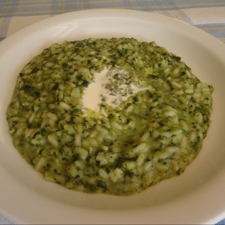 Primo piatto a base di spinaci. Spinaci surgelati (circa 150 gr): Un risotto perfetto per tutta la famiglia, cremoso e dal gusto avvolgente, un primo piatto sano e nutriente. 8 pugni di riso arborio, 2 spicchi aglio, qb olio evo, 2 l brodo, 400 gr spinaci lessati, 50 gr parmigiano grattugiato. Servite il risotto con gli spinaci ben caldo e buon appetito!
